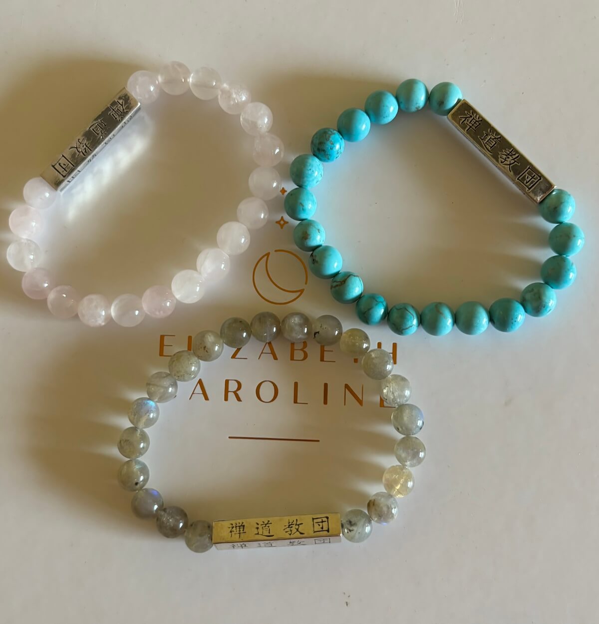 Available in Labradorite, Tiger’s Eye, Turquoise or Rose quartz and moonstone